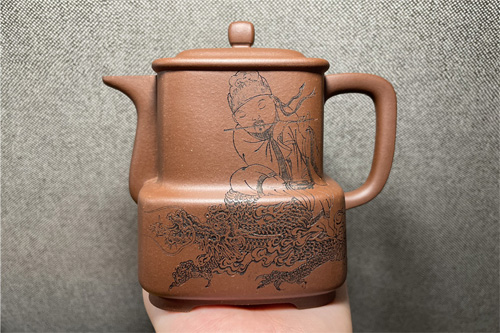 在技艺上,周昊有着深厚的功底和独到的见解。他擅长运用黄龙山原矿紫泥等优质泥料,通过全手工的方式精心制作紫砂壶。他的作品线条流畅、造型古朴、气韵生动,每一件都凝聚了他的心血和智慧。其中,《憨憨壶》、《仕衡石瓢》、《鱼化龙壶》等作品更是深受藏家喜爱,被誉为紫砂艺术中的精品之作。